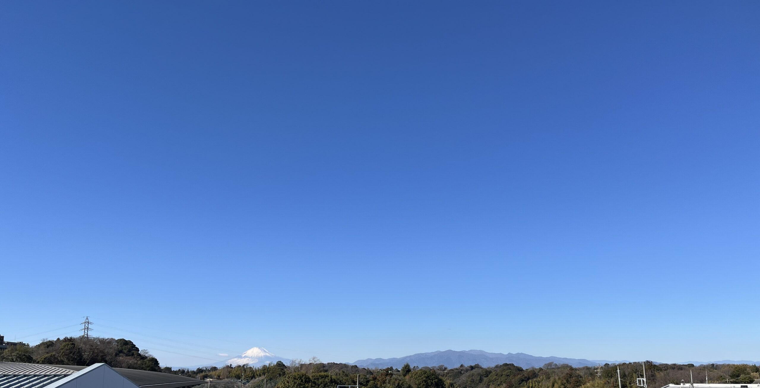 こちらは校舎の北棟から見た富士山と丹沢の山塊。肉眼だともっと大きく迫って見えるのですが…。