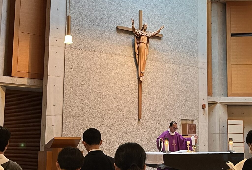 学園では放課後のミサの中で「灰の式」がありました。(自由参加なので参加者は少なめでしたが…)
