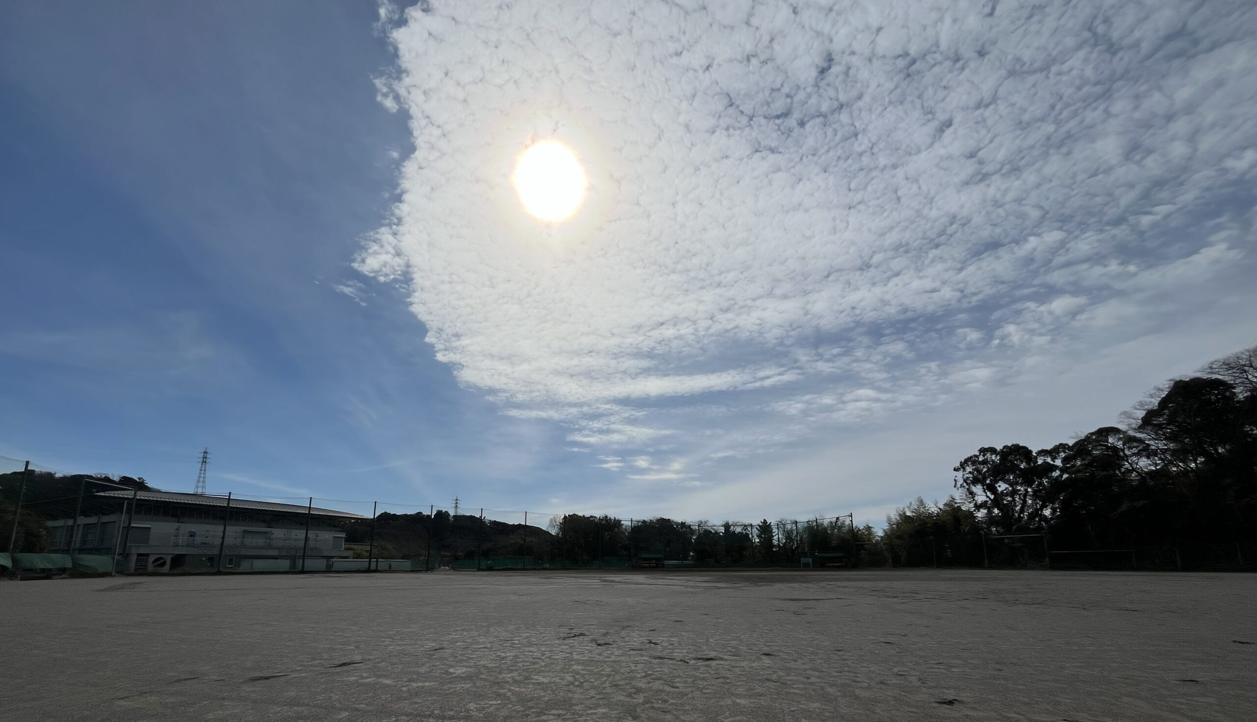 野球場のセンター後方からの景色です。左手に第2体育館が見えています。