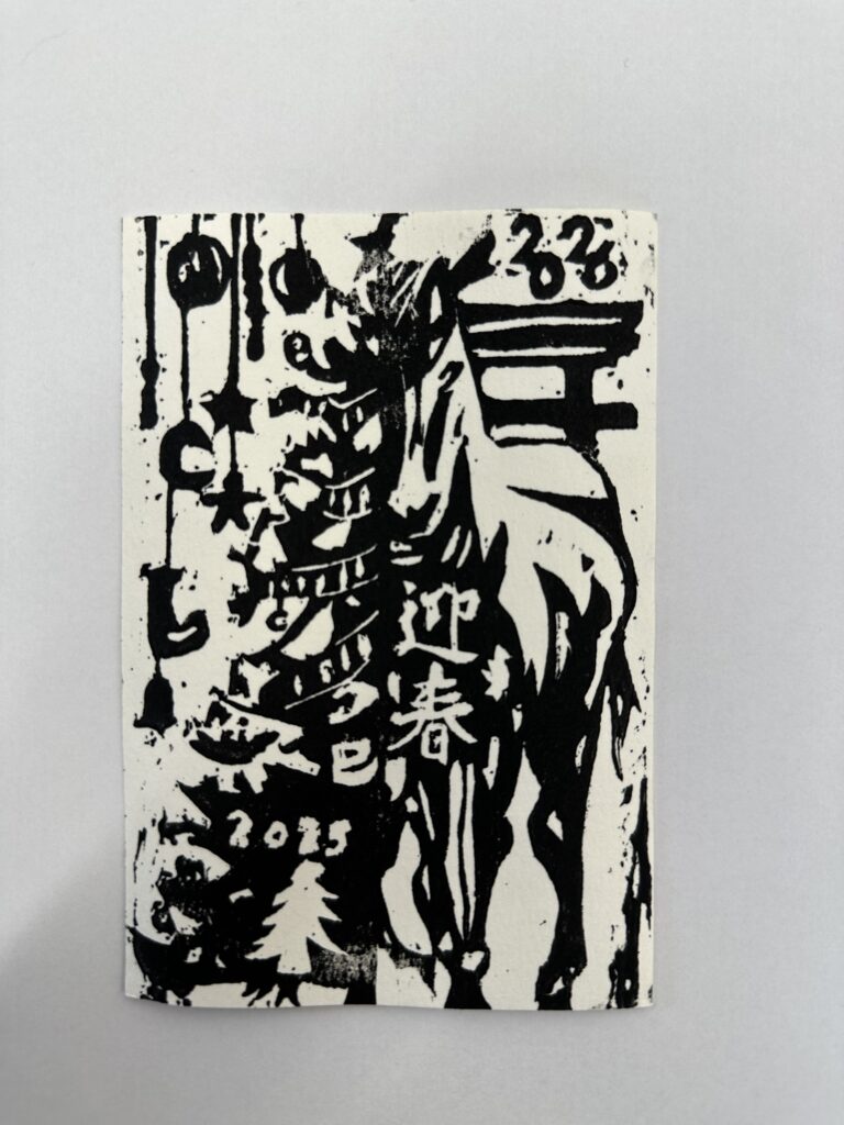 写真は、生徒が作成した「クリスマスカード&年賀状」です。