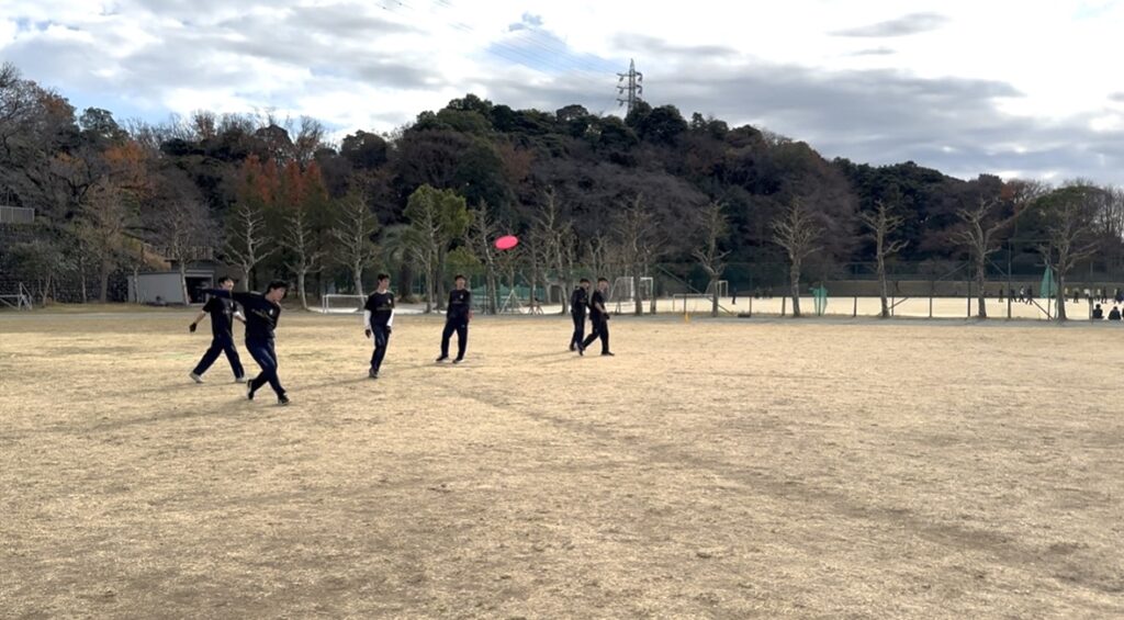 朝早く登校し、アルティメットの練習に励む高3・高2のみなさん。