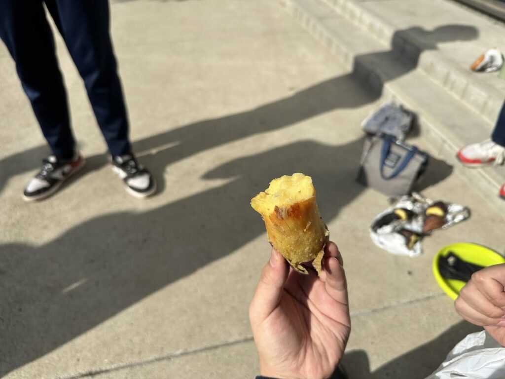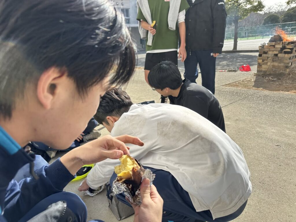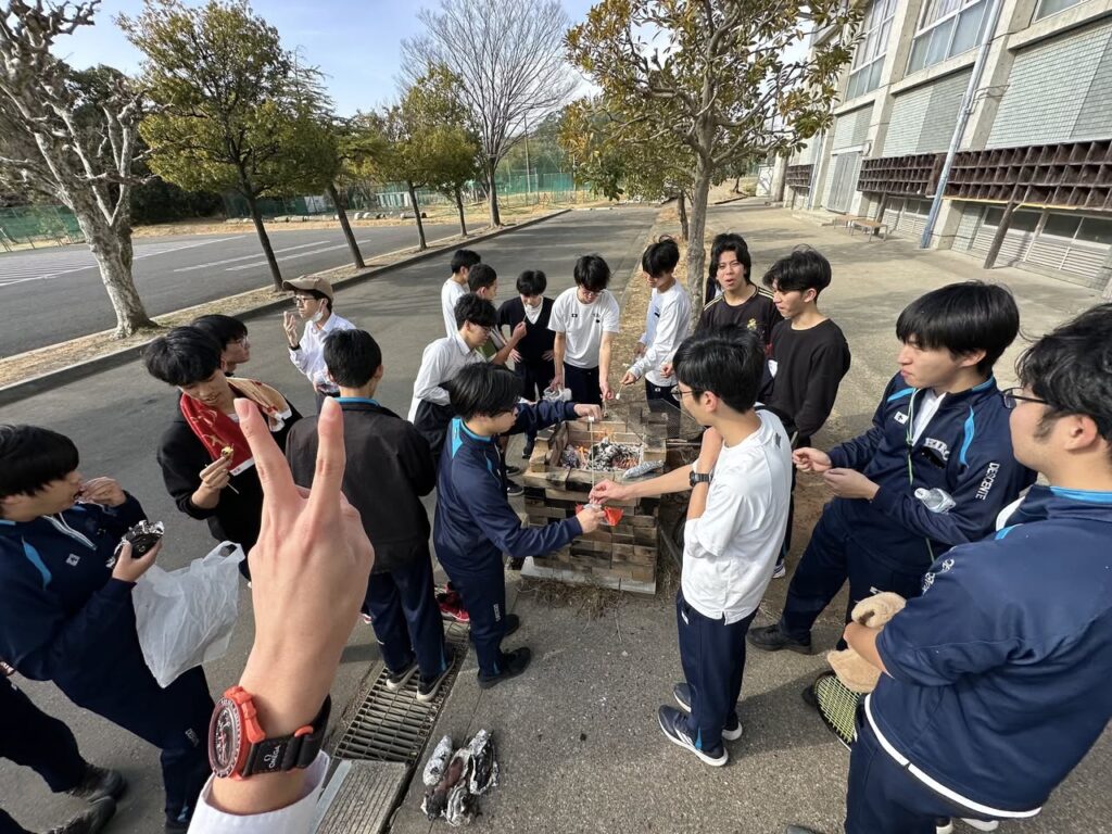 高校3年生は、授業後に焼き芋を行いました。ほくほくの焼き芋に加え、串に刺したマシュマロを焼きながら、自然と笑顔がこぼれるひとときとなりました。受験勉強の合間の、心もほっと温まる気分転換になったようです。