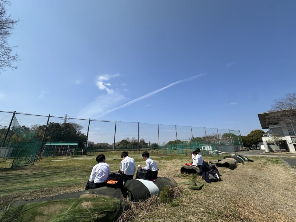 春休み。部活動を終えたあと、青空の下で囲むお弁当。